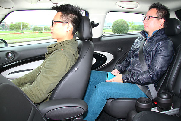 不過令人驚喜的是,從前座鑽進去後座,Mini Cooper S Paceman後座表現卻沒讓人太過失望,在四人滿載的狀態,後座的空間表現沒有捉襟見肘的狹小,縱使四名成人也可滿足中短程的移動需求;座椅面的支撐也符合人體工學,後座椅背與椅面的設計可圈可點,這點倒是令人頗為意外的。