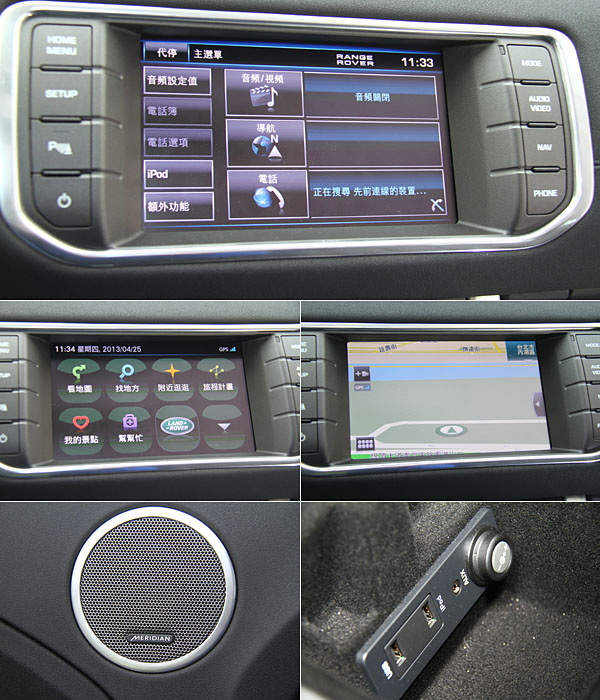 英國Meridian音響系統為標配,並整合吸入式單片CD附iPod連結系統、2個USB插座、Aux-in外接音源功能,與VGA高解析度8吋彩色中央控制顯示幕。