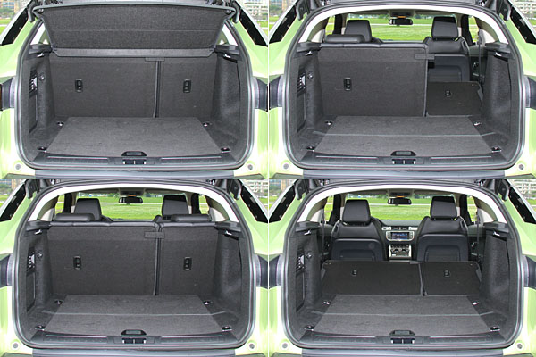 Range Rover Evoque Coupe則將後座椅背設計成30:70的比例前傾機制,雖然也不到全打平的表現,但整體的置物平台更為方正,利於用車者使用。