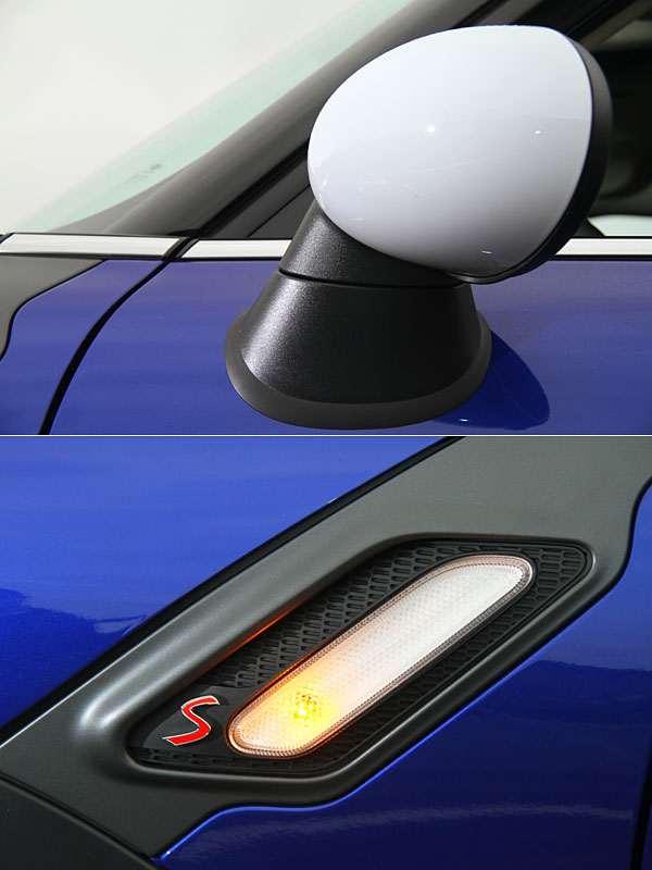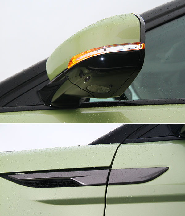 整合方向指示燈的後視鏡,與葉子板上的散熱鰓設計。