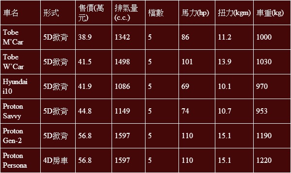 tobe旗下的M'Car(如圖)以及W'Car手排款,是台灣新車市場中最低價所能購得的車款之一。