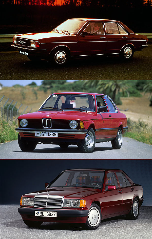 在臺灣被歸類為豪華中型房車的D-Segment級距車款,從1966年所推出的Audi 80也就是Audi A4的前身開始,讓以德國品牌為主的歐系豪華品牌陸續投入D-Segment級距市場,1975年BMW推出代號E21的首代3 Series,接著Mercedes-Benz於1982年發表現今C-Class的前身──原廠代號W201的190E車系。這些帶著些許運動氣息,同時維持傳統三廂四門布局的房車產品,自此成為德系豪華品牌中的標準配備,也肩負起德系豪華品牌入門產品的重責大任。當各豪華品牌進入臺灣市場之後,他們也扮演著跨入豪華品牌門檻的角色。