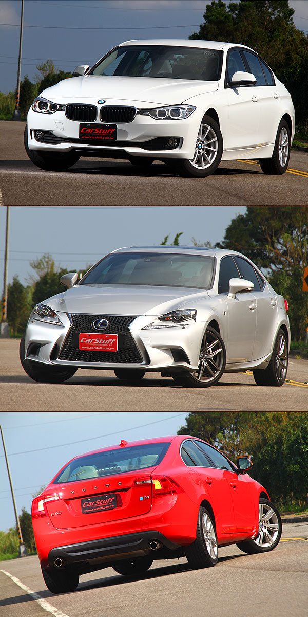 在這次CarStuff人車事的集體評比中,我們選出了價格帶位於新臺幣170萬元左右,分來自德國、日本瑞典的3款豪華入門房車──BMW 316i、Lexus IS 300h與Volvo S60 T4,也是分別搭載小排氣量渦輪增壓引擎,以及Hybrid油電混合動力的D-Segment豪華房車入門產品,一同探討此3款豪華入門房車在各方面表現的優缺與亮點,並一同檢視臺灣市場中的各款D-Segment豪華房車。