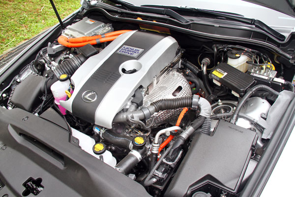 搭載之油電複合動力系統,雖有著本次三輛試駕車款中最大的223ps綜效馬力,卻因搭配ECVT無段變速系統,在動力傳輸感與樂趣上都打了折扣,即使它也是唯一配有方向盤換檔撥片的車款,但在設定上無法將檔位固定,僅能選擇最高檔位,完全是一套偽手自排系統,加上特別配置了一套動力聲浪控制系統,在Sport模式,以及將變速箱切入S模式後,會刻意提供類似V8引擎的聲浪,但這聲浪卻不一定會與引擎實際運轉與車輛動態同步,容易給人一種錯亂的感覺,無法充分掌握車輛的運行狀態。