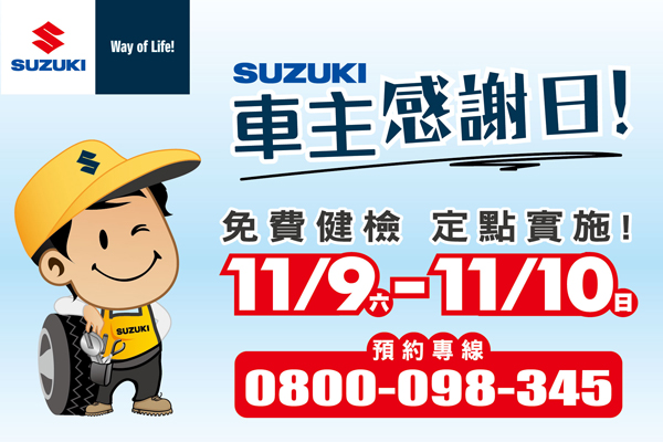 又接近歲末年終之際,Taiwan Suzuki貼心提醒趁年節出遊活動的您,應提前為愛車做好定期且完善的車況檢查!