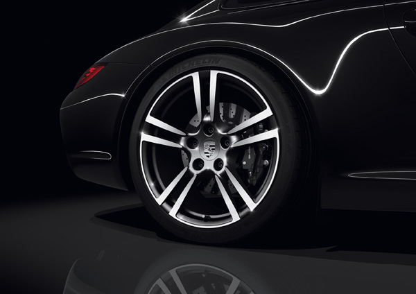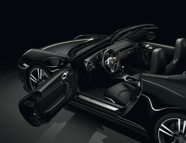 911 Black Edition將以純黑色為標準色,金屬黑的塗裝則列為選用配備,並搭配黑色軟篷。以Black Edition為名,搭配上911 Turbo II雙色調輪圈更能顯現出其質樸的優雅,而這款輪圈的設計也能讓您直接欣賞施以黑色烤漆的四活塞鋁製單體卡鉗。前擋玻璃深色遮陽處理也列為911 Black Edition的標準配備,以符合全車和諧的調性。