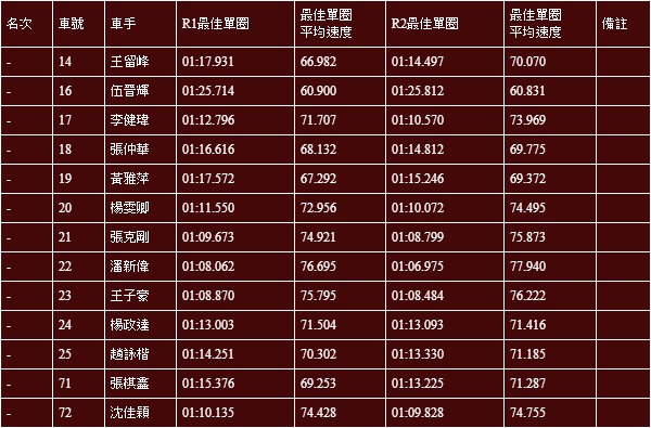 No.18 張仲華,當日最快單圈01:14.812。