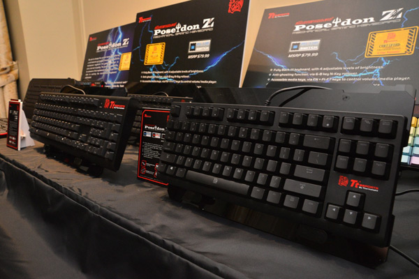 曜越Tt eSPORTS將在CES 2014展出多樣豐富的電競鍵盤,首先是新一代「POSEIDON Z青軸全彩背光機械式電競鍵盤」,除了在價格上更平易近人外,更搭配全新置入的Tt「專業認證」且「全球首創五年保固」機械式軸承,是經由知名星海玩家白大媽(White-Ra)、韓國首屈一指的PRIME星海戰隊及其他Tt eSPORTS全球電競戰隊(如曜越太陽神與橘子熊等..)經過兩年多測試後所打造出的全新軸承觸感體驗,另承襲第一代創新高達6-8顆防鬼鍵設計、複合式多媒體組合鍵與雙Ctrl快捷鍵切換設計等高階規格。此外,「POSEIDON X電競鍵盤」則將以更精巧彯悍的外型與玩家相見。而時尚品味十足的鋁製「競之刃BALMUS 全背光機械式電競鍵盤」則具備全球獨家閃移系統(ISS,Instant Shift System),十顆巨集鍵與五組設計檔外加五段獨立LED背光亮度調整模式,絕對是電競戰場上的強力焦點!