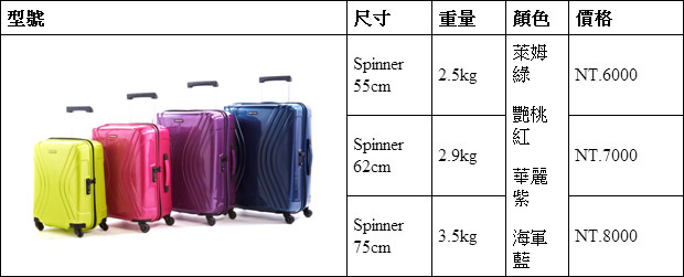 隸屬於新秀麗集團旗下,來自美國的潮流旅箱第一品牌American Tourister美國旅行者,自1933年創立以來便潮爆全球,堅持時尚潮流、年輕風格,兼具設計功能性與平實價格,持續帶給消費者更歡樂的旅行體驗及感動。最新Vivolite系列行李箱,色彩設計為一大重點,外觀特別選用鮮豔且充滿活力的顏色,如:萊姆綠、艷桃紅、華麗紫及海軍藍等;內裡當然也毫不遜色!亮麗的粉紅色與水藍色,讓您打開行李箱一樣繽紛驚喜不無聊!外觀令人驚艷還不夠,超輕量的箱體,收納上的貼心設計,以及柔軟的手把,靈活的四個滑輪,配備海關密碼鎖等,讓您輕輕鬆鬆成為旅程中的最亮的一顆星!