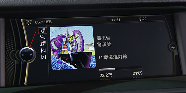 經由藍芽音訊串流和專輯封面顯示功能,可將隨身音樂播放器,或行動電話中的音樂傳輸至車輛內的音響系統,樂曲標題與專輯封面也能顯示於iDrive螢幕上,隨時聆聽喜愛的音樂。