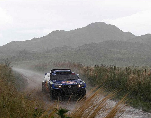 不只如此,在汽車組出發沒多久後,天空突然下起傾盆大雨,超大雨勢嚴重影響車手視線,對車輛前方路線的判讀造成嚴重影響,而原本不佳的路況更因大雨而更顯泥濘,且每當一部車輛輪胎壓過,路面上車轍就更深一點,輪胎一旦陷入車轍內,就會限制輪胎轉動的幅度,相對車輛轉向靈活度也會受到影響,因此這場突如其來的大雨確實也打亂了不少車隊的步調。