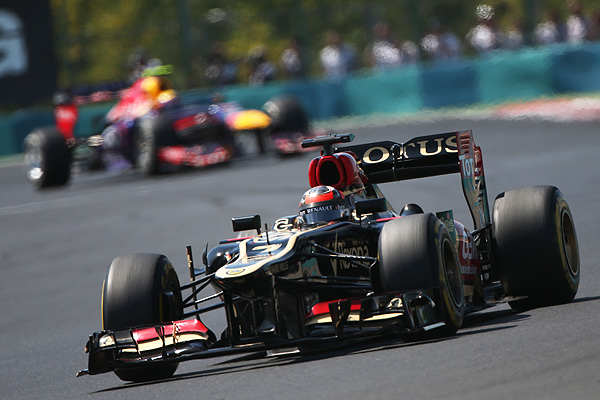 不過在難以超車的Hungaroring賽道,即使畫出兩段DRS使用區超越的鏡頭仍難以出現,經過起跑的短暫爭奪後,排名便依照起跑後的順序進行著。Lewis Hamilton穩定拓展自身的領先優勢。反倒是位居第三的Lotus車手Romain Grosjean不斷縮短與Sebastian Vettel之間的距離,緊咬衛冕世界冠軍帶給其相當大的壓力。
