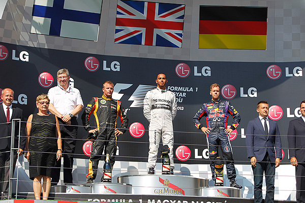 衛冕冠軍Sebastian Vettel在匈牙利站的比賽中似乎並未有想像中的順利,先是遭遇Romain Grosjean的進逼,同時有受到策略不同的Jenson Button的阻擋,未能做出理想的速度。第2位起跑的他,在賽事的後半段更落居使用兩庭策略的Kimi Raikkonen之後,雖然輪胎狀況較佳的Sebastian Vettel不斷縮短差距,卻無法在超越困難的Hungaroring賽道超越Kimi Raikkonen,最後只能屈居第3,位居分站冠軍Lewis Hamilton與亞軍Kimi Raikkonen之後。
