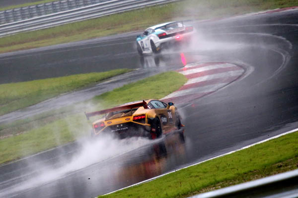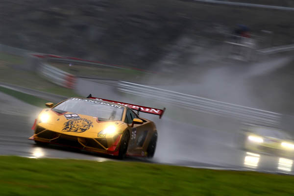 8月10日,一場大雨如期而至,而大雨過後濕滑的賽道則更加劇了比賽的緊張度。A組賽事中,冠亞軍爭奪亦相當激烈。以彎道技巧見長的日本車手Akihiko Nakaya (#10)排位第一起跑,以50分33秒206的成績完成29圈比賽,摘得個人首項Lamborghini Blancpain Super Trofeo亞洲挑戰賽的冠軍頭銜。而雪邦站冠軍車手、來自馬來西亞的Afiq Yazid (#2)也志在必得一路勇追不捨,最終緊隨日本冠軍,以1.867秒之差屈居亞軍。而多次站上領獎台的中國車手Jiang Xin和義大利車手Max Wiser (#9)則以穩定的表現,再次獲得季軍。