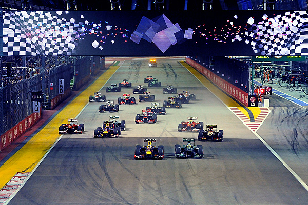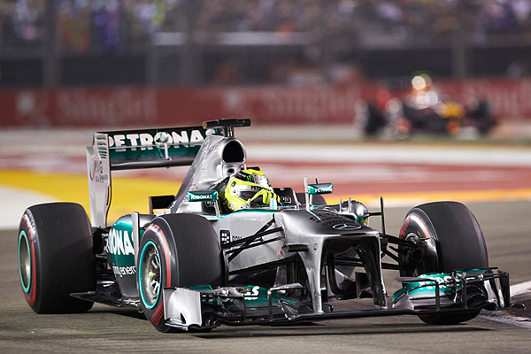 新加坡時間晚間8點,2013年新加坡大賽正式起跑,Ferrari車隊的西班牙車手Fernando Alonso展現優異的起跑,第7位起跑的Fernando Alonso迅速竄升至第3位。頭排起跑的Nico Rosberg也一度威脅Sebastian Vettel的領先位置,不過經過第1彎至第3彎的攻防之後,仍無法壓制Sebastian Vettel,僅能留在第2的位置上。