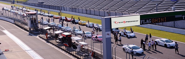 Lamborghini車主巡遊車隊在日本富士國際賽車場上演聲勢浩大的義大利車型秀。