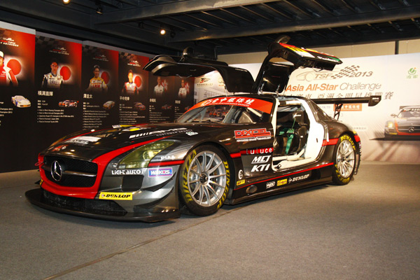 備受國內廣大車迷期待的「2013 TSF Asia All-Star Challenge台灣大賽車亞洲全明星挑戰賽」,於12月18日舉辦「把冠軍留在台灣,一起為台灣車手加油」誓師記者會,現場除了參賽的國內外頂尖賽車好手齊聚一堂之外,首度在台灣登場亮相的Mercedes-Benz SLS AMG GT3廠車、與戰力不俗的Ferrari 458 Challenge GT3廠車,更同步現身記者會現場。目前比賽已進入緊鑼密鼓的最後備戰階段,請大家一同為台灣車手加油,誓將把冠軍金盃留在台灣!