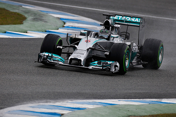 為了給予Pirelli輪胎更多的測試機會,2014年所規劃3輪F1季前測試中,都在4天的測試行程中規劃一天進行雨胎的測試。在Jerez賽道的首輪季前測試便將第2天設定為雨胎測試,即使西班牙當地的天候狀況並不足以使用雨胎,還是使用灑水車將賽道淋濕,以提供適合雨胎及半雨胎使用的環境。
