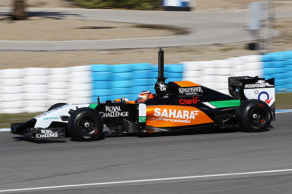 雖然第2天才是進行濕地測試,但從首日開始Jerez便狀況不斷,包括Lewis Hamilton的2014年賽車首撞,Caterham CT05在Pit Lane的火燒車,以及McLaren MP4-29一出車庫便機械故障連1圈的無法進行測試等窘境都在Jerez季前測試的首日上演。除了Lotus與Marissia缺席之外,其餘9支車隊總共只進行了93圈的測試里程。其中以Ferrari車隊Kimi Raikkonen的1:27.104單圈成績與31圈的測試里程為最,Lewis Hamilton在撞車前也作出1:27.820的單圈成績與18圈的測試里程。