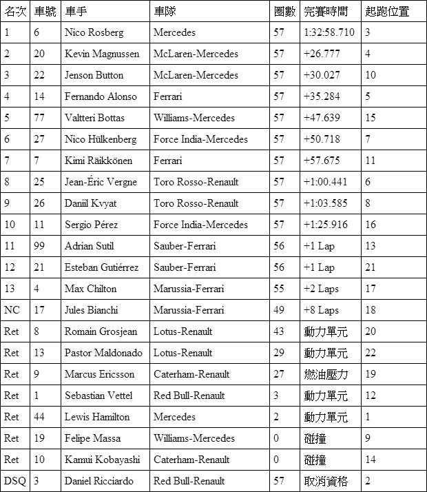挾帶優勢下,Nico Rosberg奪下了2014年奧週戰的分站冠軍。