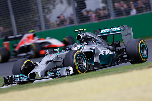 反觀Mercedes-AMG車隊,雖然桿位得主Lewis Hamilton因為引擎故障的關係,早早便退出比賽,但Nico Rosberg卻展現了統治比賽的速度,每圈比後方RB10快上1秒以上的圈速,起跑後便順利拉開領先優勢。即使中途曾因為Valtteri Bottas賽車爆胎碎片的關係引發Safety Car,仍然未損其領先優勢,最後便以高達26秒的領先優勢率先接受方格旗揮舞,奪下2014年賽季的首座分站冠軍。