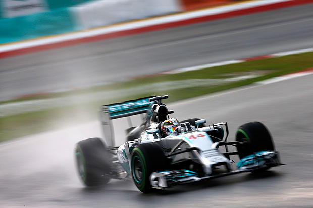 Lewis Hamilton再次展現絕佳的速度,在雨中奪下馬來西亞站的起跑桿位。
