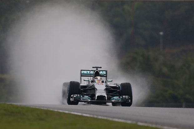 因雨延遲或影響賽事進度,往往是馬來西亞雪邦賽道不令人意外的戲碼,而3月29日當天不僅再度上演,更因強烈午後雷陣雨的搗亂,讓排位賽三度延後。在毫不停歇的雨勢中勉強開跑的排位賽,其實考驗著各車隊的臨場應變能力,輪胎選擇與進站更換時間掌握更顯重要。不過這一切考驗,絲毫不減Mercedes-AMG PETRONAS F1車隊的氣勢,不僅於車輛本身展現優異體質,車隊的策略與車手的精湛技術發揮下,第一圈暖胎後Mercedes AMG PETRONAS車隊立刻強勢刷出全場最優異成績,而後於Q3超級排位賽中,Mercedes AMG Petronas車隊優勢依舊,最終Hamilton以1:59.431的成績奪得桿位,隊友Rosberg則以2:00.050的成績獲得第三順位的起跑位置。