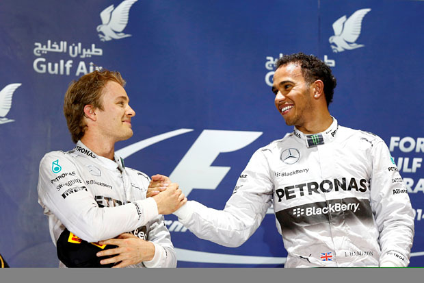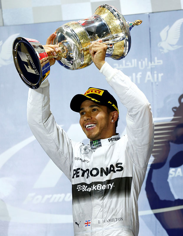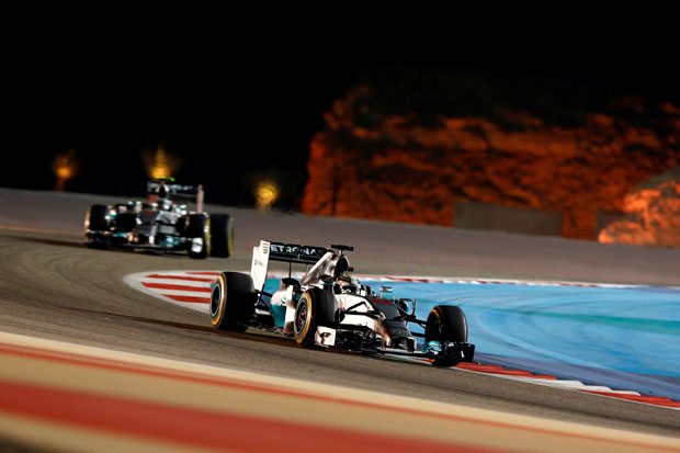 地處中東的巴林站Sakhir賽道,不僅炎熱的沙漠氣候考驗著車輛燃油與車手的體耐力負擔,日夜的溫差與沙漠強風,對於賽車也是一大隱憂。適逢10周年的巴林站,FIA決定將本屆賽事時間延後,成為全年賽季中第三個夜間賽事,為了於此荒涼的沙漠中提供足夠照明,開賽前也特別針對此賽道建構全新照明系統。雖然如此,仍然不影響Mercedes-AMG PETRONAS F1車隊的絕對優勢,於4月4日星期五的練習賽中,在其他車隊還在苦於與賽道及天氣掙扎的狀態中,Lewis Hamilton與Nico Rosberg便分別刷下了最速圈紀錄,到了4月5日星期六的排位賽當天,Lewis Hamilton與Nico Rosberg除了於Q1較為保守外,Q2時便輕鬆展現W05賽車實力,分別拿下了最速與次速的位置,而進入到Q3時,Mercedes-AMG PETRONAS F1車隊兩位車手更以01:33.464及01:33.185的單圈成績,包辦了桿位與第二順位的起跑位置。不僅如此,排位賽時除了Mercedes-AMG PETRONAS F1車隊本身的優異表現外,綜觀前十名完賽的車隊中,使用Mercedes-Benz動力元件的賽車就高達六輛,說是Mercedes-Benz的全面勝利,一點也不為過!