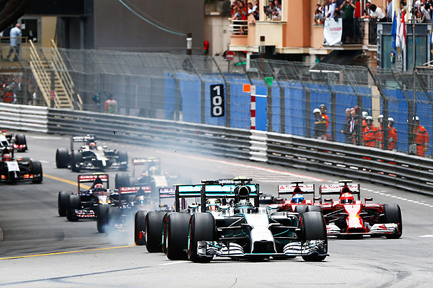 星期日下午Monte Carlo當地天氣晴有雲,氣溫攝氏23度、賽道溫度攝氏29度,降雨機率僅有20%,對於賽車而言相對涼爽且乾燥,也是對賽車負荷較小的狀況。當21輛車於起跑線上就位後 (Caterham車隊的Marcus Ericsson由於受罰的緣故必須遊Pit Lane起跑) ,場上的焦點鎖定在頭排起跑的兩位Mercedes AMG車手身上,前一天結下樑子的兩人,再加上Lewis Hamilton於賽前放話要以Ayrton Senna的方式處理隊友紛爭,起跑後1號彎的競逐,是滿場車迷最期盼的所在。