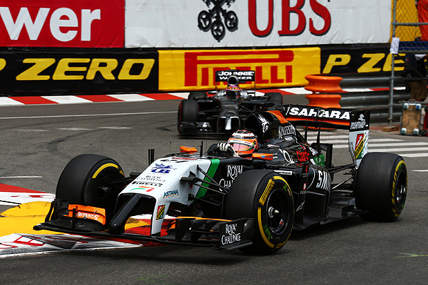 不過,第25圈時Adrian Sutil卻成為悲劇的主角,在出隧道後賽車失控撞上護欄,不僅自身退賽,也讓Safety Car第2次出勤,趁著這次Safety Car出動的機會,眾車手紛紛進站換胎。但兩位Mercedes AMG的車手再次發生衝突,同一圈進站的結果,讓落後的Lewis Hamilton必須等待Nico Rosberg完成換胎動作後才能進行作業,本想藉進站機會洗牌的規劃就此化為泡影,Lewis Hamilton甚至還在Team Radio中抱怨這次的進站規劃。由於今年摩納哥站天氣相對涼爽的緣故,各車隊多半採用1停策略,使用超軟胎起跑的車手皆換上軟胎,直接鎖定最後的方格旗。包括兩位Mercedes AMG的車手在內,或許也是因此才讓Lewis Hamilton如此氣憤。