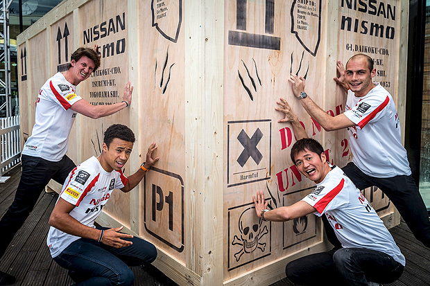 上頭印著P1字樣,並打上2015年前請勿打開警語的貨櫃,宣告Nissan的2015年Le Mans LMP1參賽計劃正式啟動。