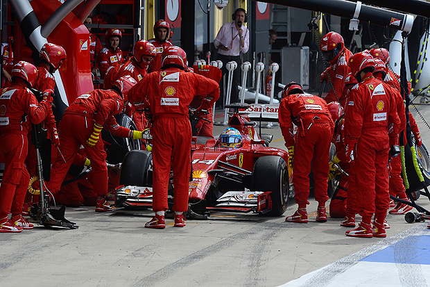 Fernando Alonso利用進站換胎的機會直行Stop and Go處罰,Pit Crew必須等待5秒鐘不得接觸賽車。