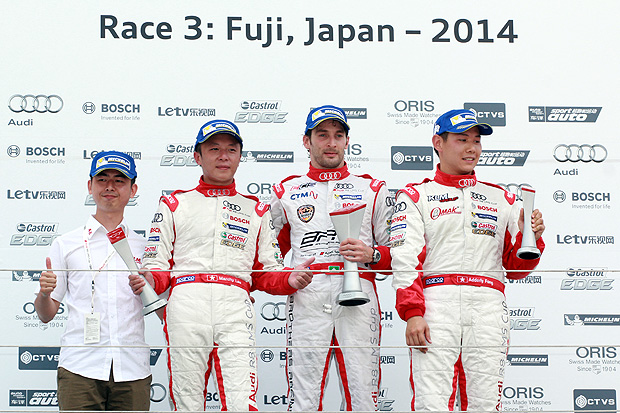 2012年開辦的Audi R8 LMS Cup,不僅是世界上首個以FIA GT3等級賽車為競賽車種的統一規格賽,也從2013年開始走出中國,踏入韓國與馬來西亞。而今,Audi R8 LMS Cup也終於進軍亞洲賽車文化最深厚的日本,選擇在曾經舉辦過F1日本大獎賽的富士國際賽車場 (Fuji International Speedway) 進行本賽季第二站的兩回合賽事。在風景優美的FIA Grade1賽道中,澳門籍的André Couto與馬來西亞前F1車手熊龍 (Alex Yoong) 大放異彩,分別奪下第三與第四回合的優勝。