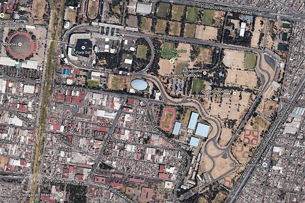 位於墨西哥市的Hermanos Rodríguez賽道將於2015年重返F1賽程。 (圖片擷取自Google Map。)