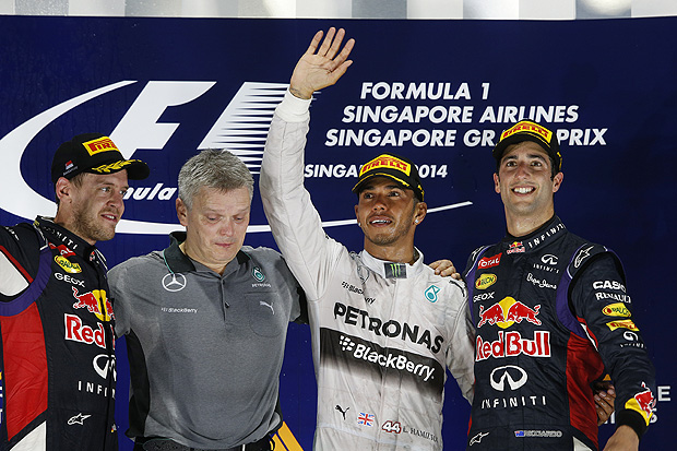 比賽最後就由Lewis Hamilton奪下2014年新加坡站的分站勝利,Red Bull Racing車隊的Sebastian Vettel與Daniel Ricciardo分居第2與第3,Ferrari車隊的Fernando Alonso最後無力超越,只能屈居第4。後方則是Felipe Massa、Jean-Éric Vergne、Sergio Pérez、Kimi Räikkönen、Nico Hülkenberg與Kevin Magnussen。
