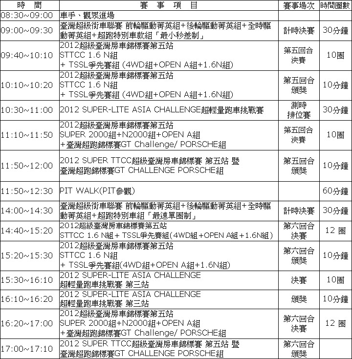 2012年10月21日(日) 賽程表