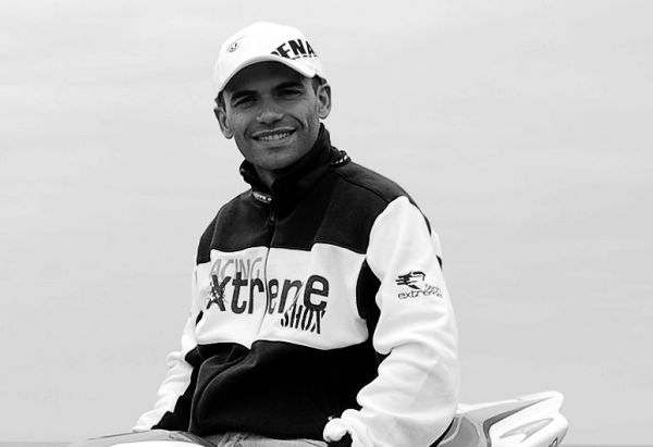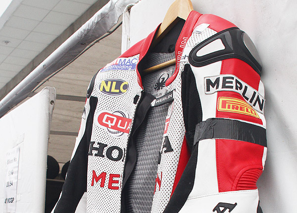 參賽的電單車選手特地在賽車皮衣手臂纏上黑帶致哀Luis Careirra。