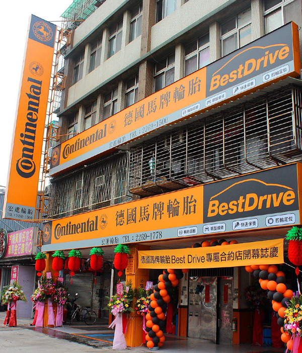為了服務國內廣大車主,自2007年起引進Continental BestDrive通路品牌概念,從德國導入全套的店面專業施工規範,提供國內消費者一個與先進國家同等級的舒適、專業換胎環境。在德國馬牌輪胎台灣分公司Continental BestDrive專屬合約店中,除了能夠買到符合國際水準的高性能、高品質輪胎外,還可以享受到與歐洲相同的高水準專業設備、服務技術與舒適環境;這不只是一項將特約輪胎店設備提升、招牌和店面重新裝潢的硬體改善,更重要的是帶給使用德國馬牌輪胎的車主一種截然不同的全新服務體驗。
