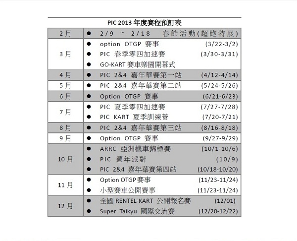 大鵬灣PIC 2013年度賽程時間表(2013/01/15更新)