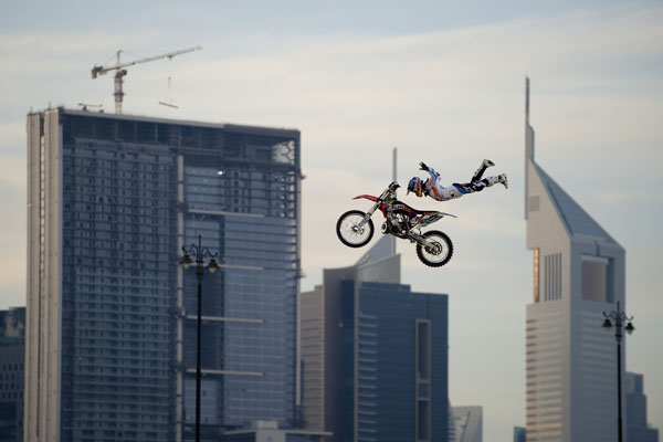 今年為Red Bull X-Fighters極限機車花式競技世界巡迴賽,連續第三年來到杜拜舉行,但卻是首次將賽事拉到市區內比賽。所有參賽車手皆將面對酷熱的環境及沙塵的嚴峻挑戰,這不僅是車手本人,更是機械面臨的最大考驗。