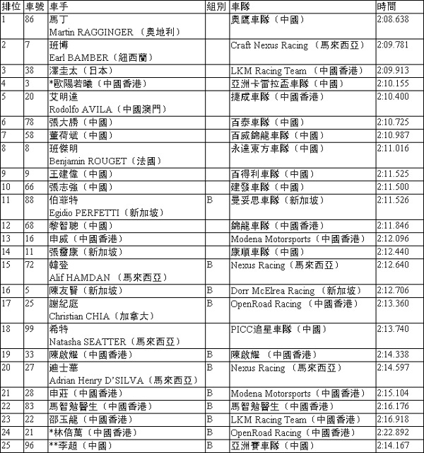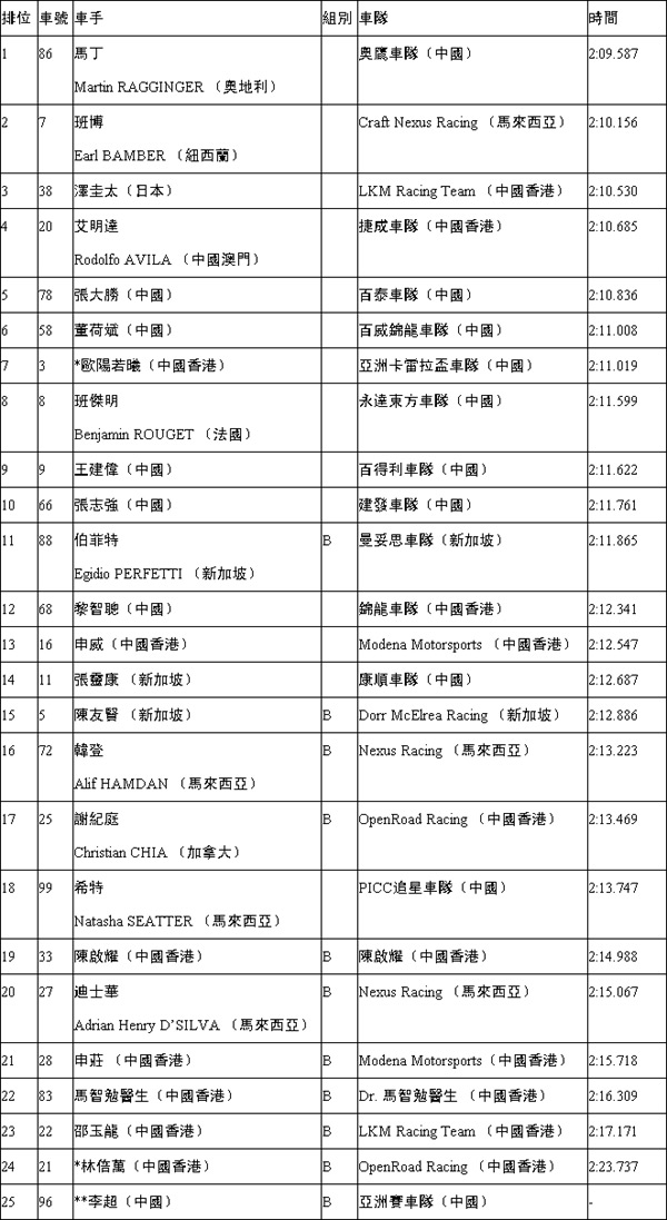 2013亞洲保時捷卡雷拉盃第二回合排位賽成績