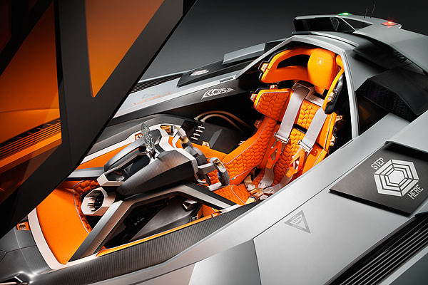 座艙內部,鮮橘色的賽車座椅前方,除了科技感十足的方向盤與液晶顯示儀表板,還有陡立的抬頭顯示器。即使Lamborghini原廠並未明說,也能看得出濃厚的戰鬥機風格。在Egoista身上,Lamborghini所期望帶來的,不僅是一人獨享的駕馭樂趣,更是猶如駕駛戰鬥機般的操駕感受,讓Egoista成為一款在地面飛行的戰鬥機,而車主,便是掌握方向盤的飛行員。