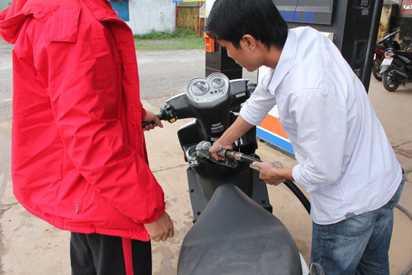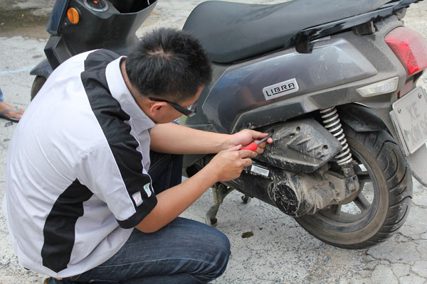 由於I’ME 125的加油孔在前面與越南當地的機車不太一樣,加油站的員工還研究了半天,油要加在那?