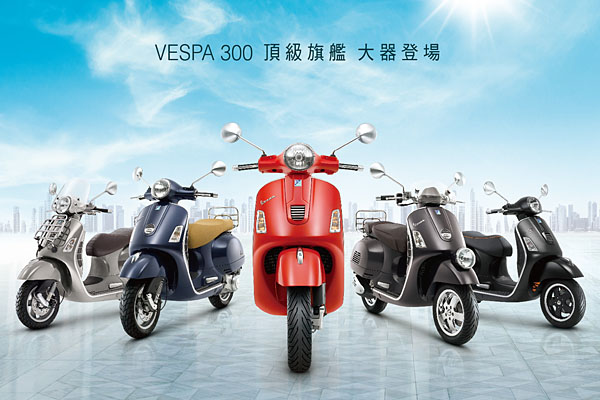 為滿足眾多車友的不同需求,在總代理積極向原廠爭取之下,Vespa 300頂級旗艦車款由先前GTS 300ie Super、GTS 300ie Super Sport及GTV 300ie三個車型,加入了GTS 300ie都會入門車型及GTS 300ie Touring經典旅行車型。五款頂級旗艦車型一齊到位,完整滿足車友的深度品味。