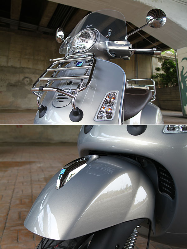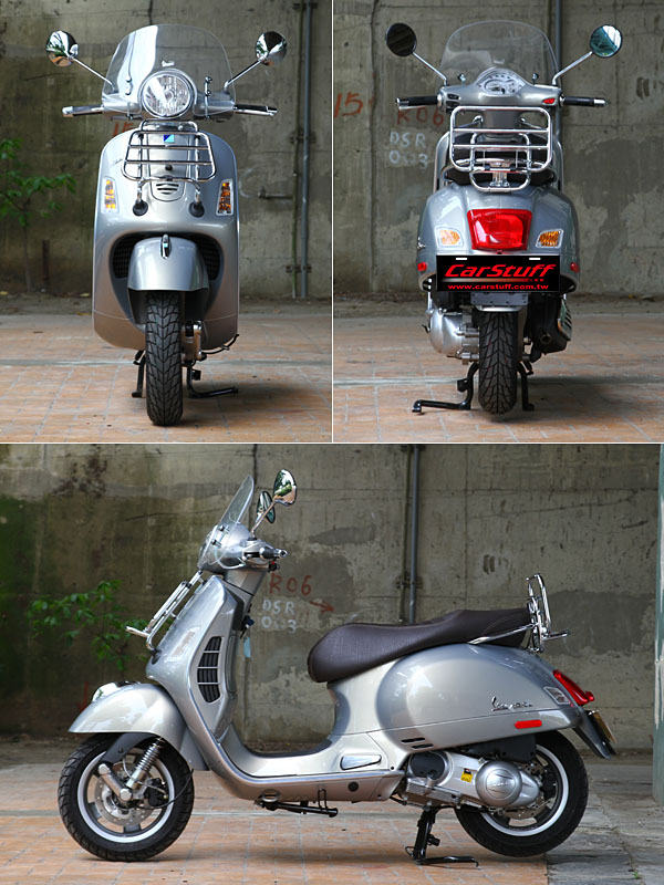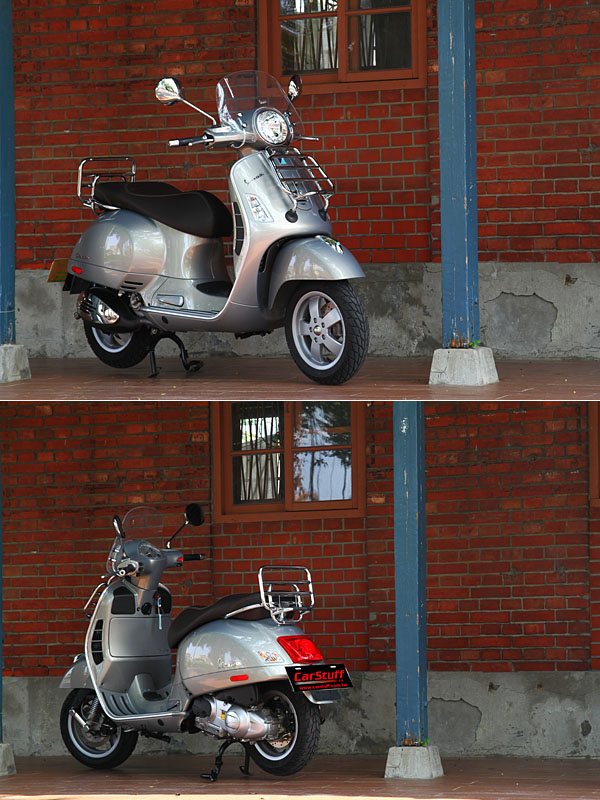 這次的接觸機會,緣由是Vespa全新300c.c.車系引進的車系陣容增加,從原先GTS 300ie Super、GTS 300ie Super Sport與GTV 300ie三個車型,新增了GTS 300ie與GTS 300ie Touring,前者主打都會通勤,後者則如車名所述,強打旅行。都會通勤,GTS 300ie於車尾加上了行李架,較原有的GTS 300ie Super、GTS 300ie Super Sport更添增了些實用機能;而GTS 300ie Touring,更於車前斜板與車尾處各家一置物行李架,搭配較GTV 300ie更大面積的前風鏡,減輕長途騎乘的風壓影響。