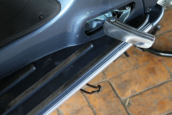 伸縮式的後座腳踏桿,收納後一體成型的質感一流。