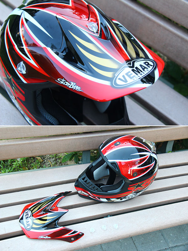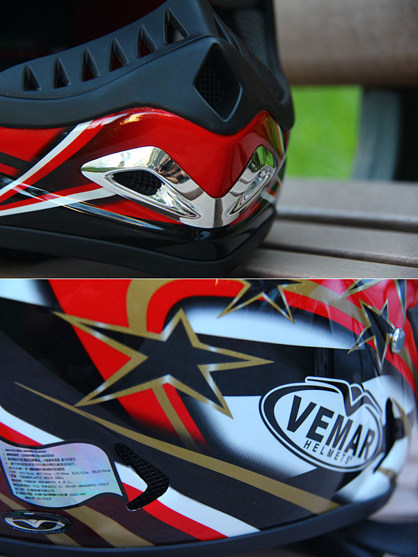 而在試駕BMW R1200 GS車型時,則換配戴義大利Vemar所推出的VRX5越野帽款。此帽款雖然非Vemar在台的高能見度產品,但畢竟以越野帽而論,原先就非主流帽款,且以VRX5不到9000元的價格,有著十種彩繪花色可以選擇外,且同樣延續Vemar的品牌特色,在S~XXL的多樣尺碼中,提供兩種帽殼大小,並有著專為亞洲人頭型設計的內襯,並採用抗菌速乾材質,頭頂兩頰全部也可拆下清洗,並以最安全的雙D扣設計,提供最頂級的安全防護。