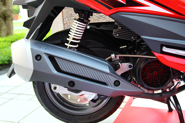 動力表現方面,搭載上世代便廣受好評的S.T.C.S雙渦流噴射引擎,並重新設計空氣濾清器來提升容積效率,搭配全新調校之S.T.C.S系統搭配16位元京濱EMS系統來提升燃燒效率,最後提升冷卻風扇的效率。透過以上三大改善重點,將最大馬力進步至14.5hp水準,峰值扭力則為1.35kgm。
