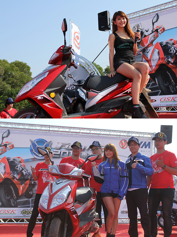 午餐過後邀請SYM長官與2013網路人氣票選後座女神---圈圈,同時也是六代Fighter車主之ㄧ,與眾多車友一起見面同樂,親身說明第六代Fighter的強悍魅力。