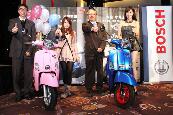 除了PGO總工程師陳志超博士(右二)以外,知名部落客與作家薇薇(左二)也現身站台,並於記者會後親自體驗J-BuBu 115 ABS的安全特色。